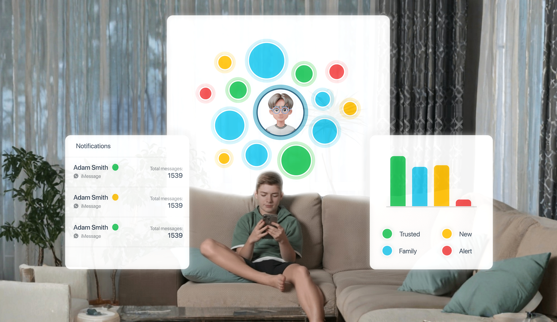 See who your child interacts with most frequently and spot emerging contacts that might need attention. The social graph visualizes relationships and communication patterns, helping you understand the broader context of your child's digital social life without invading their privacy.